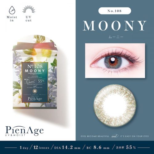 全8種類の中から今回は、アクアマリンの深く際立つカラーで魅惑的に輝く瞳になれる『ムーニー(NO.108 MOONY)』を紹介していきます。