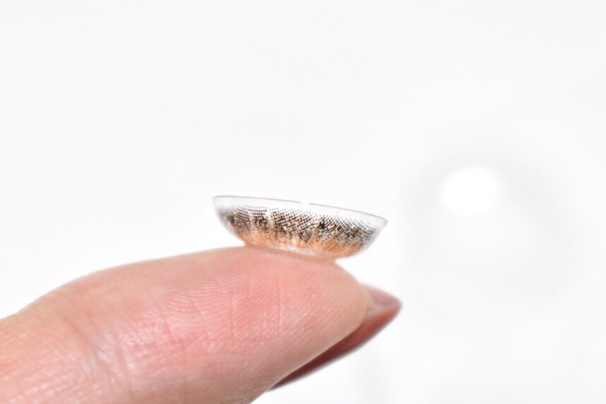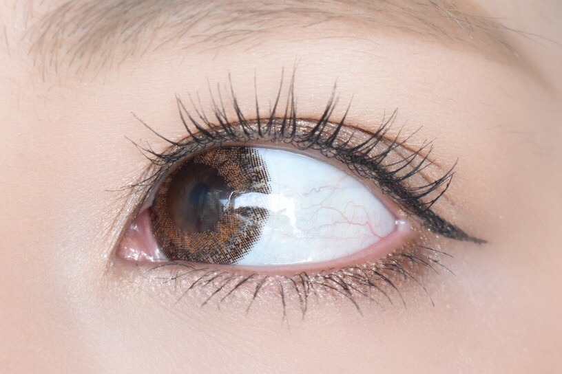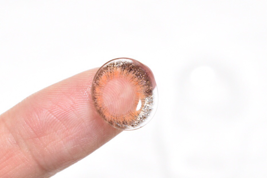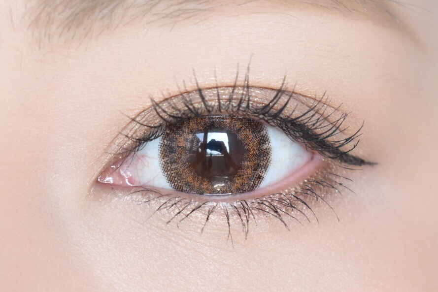 レンズの着色部分をよく見てみると、外側がダークブラウンで内側に向かってオレンジ系の明るいブラウンが広がっています。